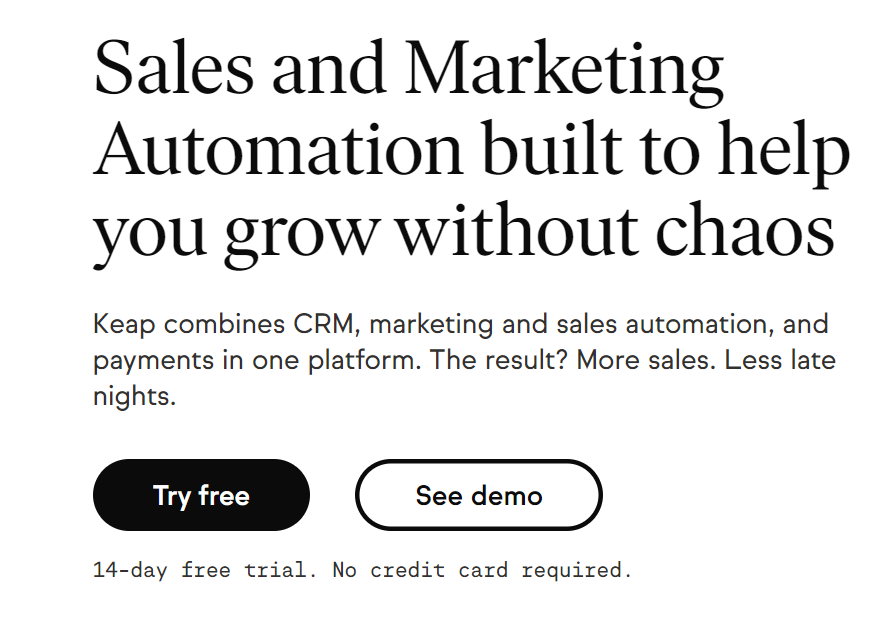 Keap is another all-in-one package with CRM, marketing automation, and payments in one platform. It helps you segment your audience, automate your email campaigns, and capture lead and customer information (calendar bookings, invoices, payments, etc.) in one place.