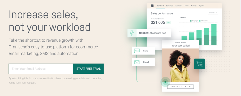 Omnisend is another useful email marketing automation platform for e-commerce folks. The omnichannel experience comes from the SMS feature that keeps your messages consistent across channels.
