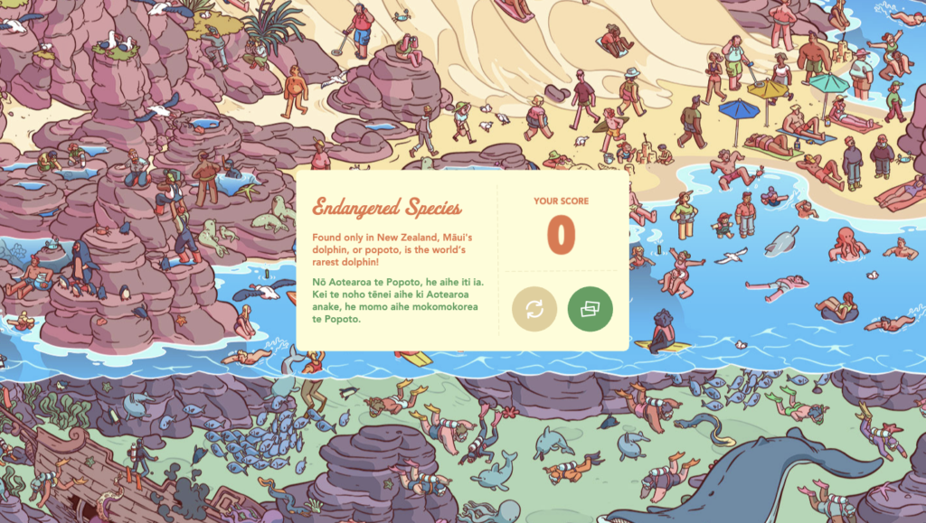 Children can explore five unique environments in New Zealand, including the Moana marine reserve, Waipoua forest, a field day in Canterbury, Cuba Street in Poneke, and Rotorua’s geometric design.