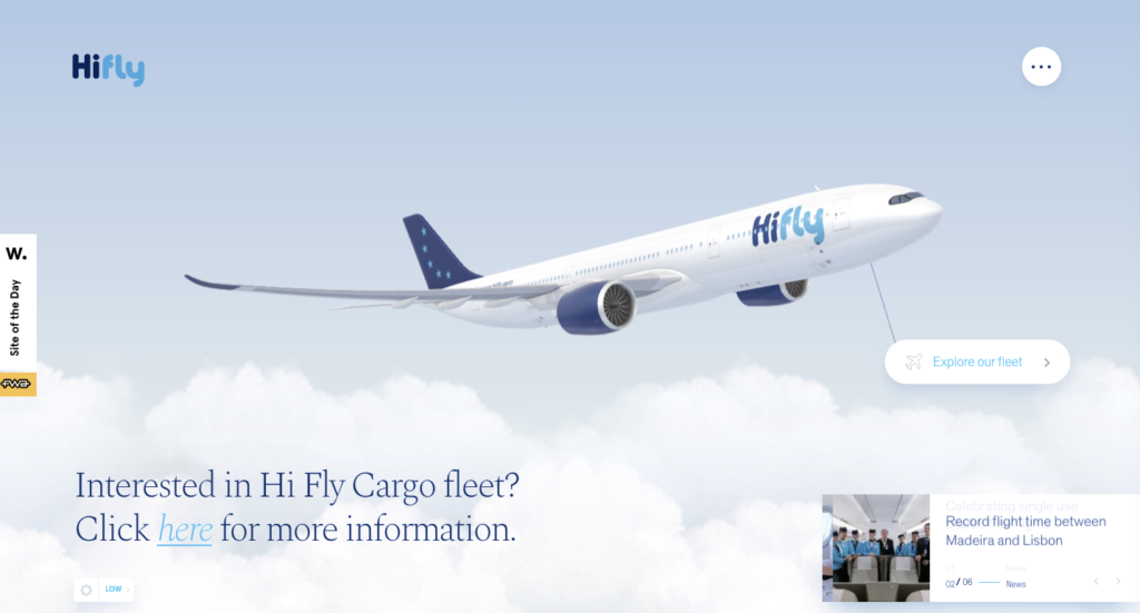 Fasten your seat belts for this interactive website is about to take you up into the sky. Hifly, a leading chartered and wet-lease service provider, uses interactive web design with interactive aircraft models to create a high-up-in-the-sky experience for its visitors.