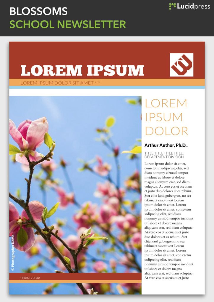 Flowers are ideal for school newsletters because they signify growth, potential, and purpose and give everything a happy vibe. Simply add your school’s logo, the text, and a few creative photographs, and you’ve got yourself one of the best newsletter design templates parents will want to read.