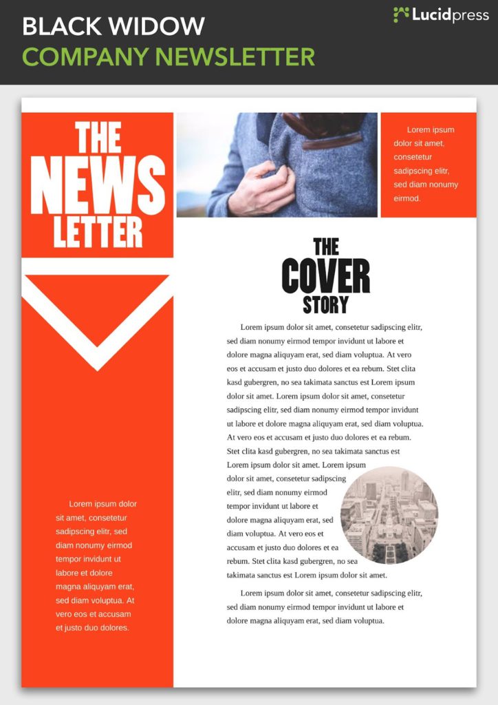 The newspaper-style columns make it easy to convey a variety of articles or ideas, and the header is ideal for regular newsletters featuring prominent authors.