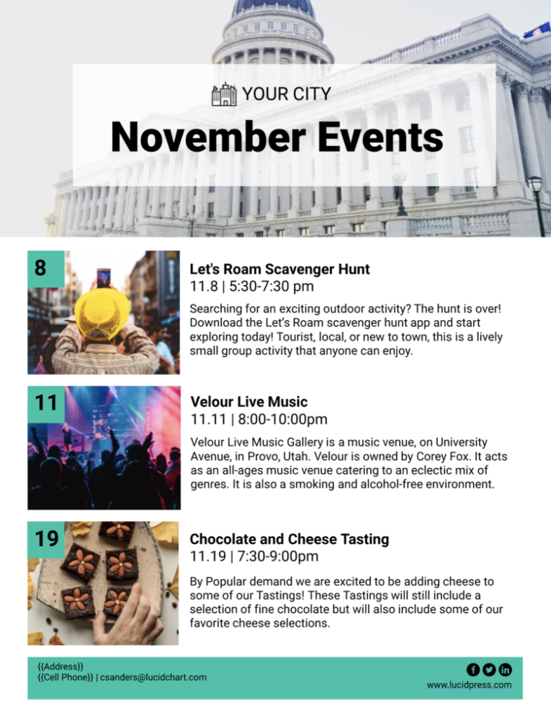 Keep your community informed about forthcoming virtual and in-person events. Use the ample writing space to communicate with others about changes in local regulations, upcoming town halls, and more. Insert photos from previous events and leverage the ample writing space to communicate with others about changes in local regulations, forthcoming town halls, and more.
