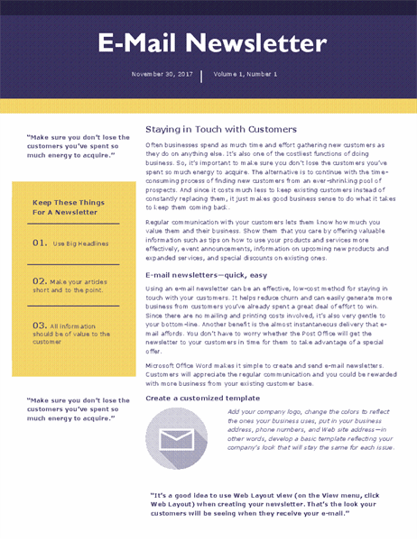 You want your newsletter to represent your message, whether for a school, a company, another form of organization, or just for your family and friends. These newsletter design templates provide you with a wide range of options for doing that.