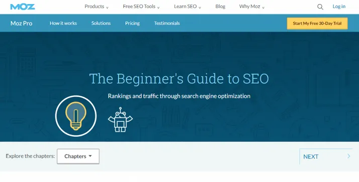 Moz, a renowned name in the SEO industry, is one of the best and most reliable sources of SEO knowledge. Its beginner’s guide is a free, easy-to-follow course that trains you with SEO basics. Moz also allows you to build an SEO team, providing fantastic customized training. They also have multi-day training events delivered via a webinar or live chat at their head office.