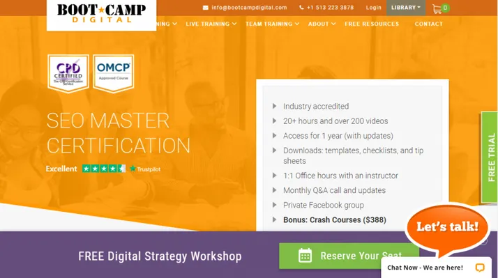 Bootcamp Digital’s course is an industry-accredited certification course. It has one-on-one interaction with instructors, and aspirants can download templates and checklists. It also has a private Facebook group to discuss what they have learned so far. This course is a little pricey, but it includes a free digital strategy workshop.