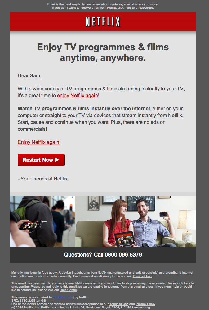They email the existing users relevant updates based on their viewing preferences. A number of their emails have GIFs inspired by shows and films incorporated within. With valuable, skimmable, and imaginative emails, Netflix has proved that email marketing is highly effective.