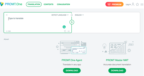 PROMT Translator has several great features despite not having as many languages as other translation websites. These include automated language identification, virtual keyboard, and even subject selection. The site has spell check, copy, paste, a dictionary, and is downloadable.