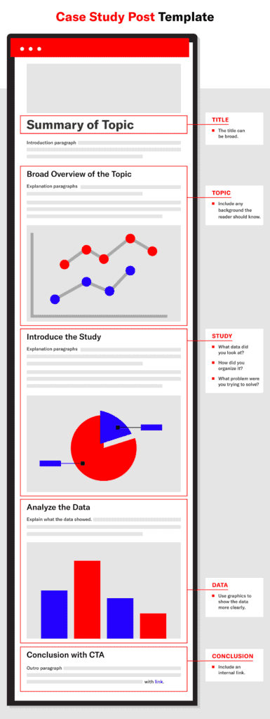 - Introduction: This section of the blog post content template introduces the study or the case. Explain the steps, experiments, and research that back this case study. Address who this study will help, the players involved, and what problem it resolves.