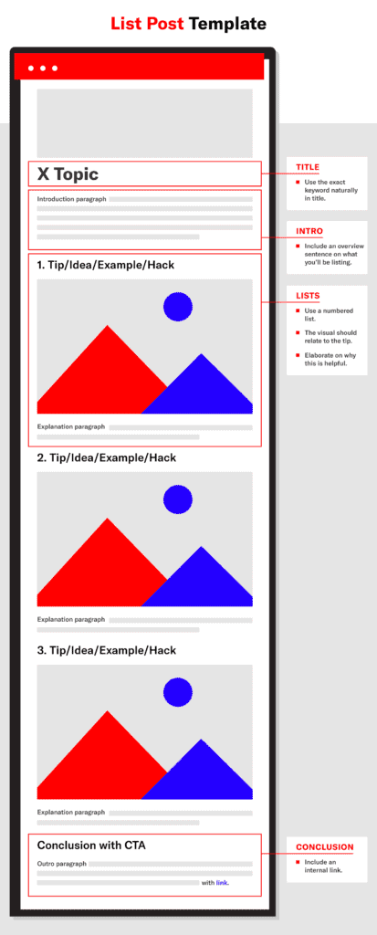The pillar blog post content template is often confused with ‘what is’ and ‘how to’ posts. While the intent is informational in all three, pillar posts are touted as the ultimate source of information on a particular topic.