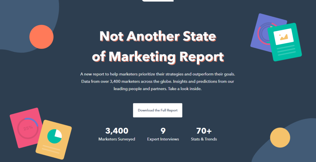 Every year, major platforms publish “State of ___ in 2021” reports that simply compile all the news and statistics from the past year. These can easily be picked up from existing blogs and rewritten to suit the subject line. Here’s one from HubSpot.