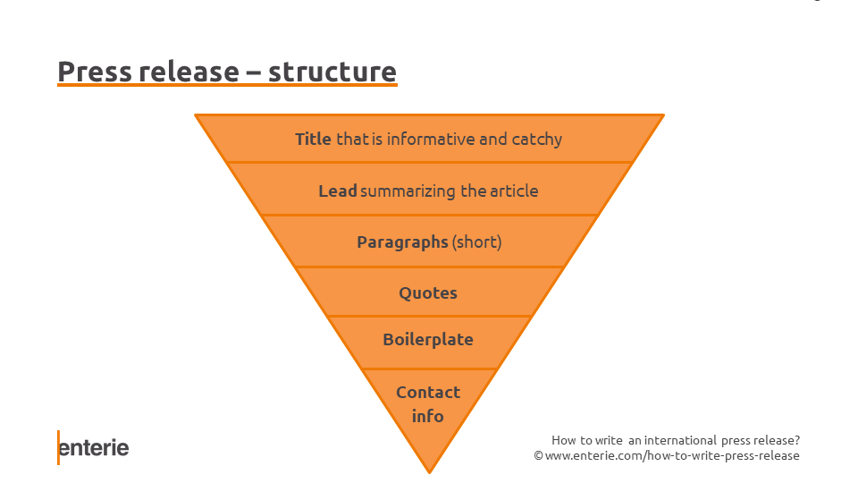 Press releases are written in a specific format, including a title, a subhead, a quote, the body, and a boilerplate or a summary of the company. They are 400-500 words long and published on news sites.