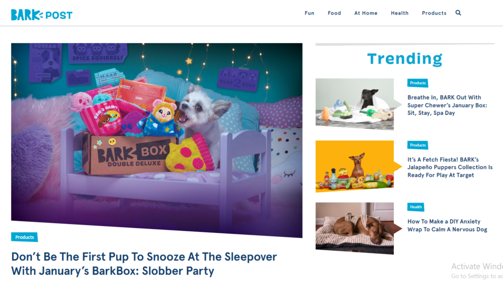 Blogging tip: What really catches the attention of Bark’s innovative blog marketing strategy is how consistently funny they are – starting with the title that’s aptly named BarkPost! The whole page is filled with puntastic headings, some written by their own editors and others that are submitted by customers.