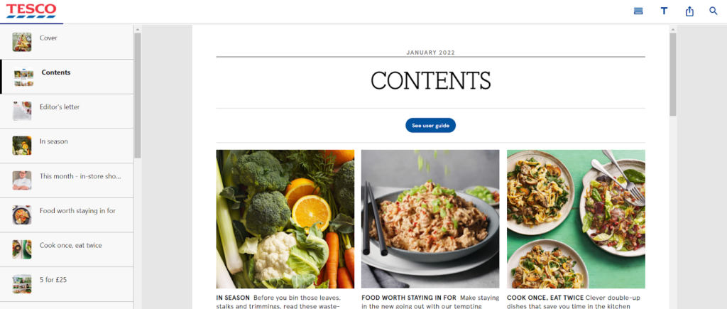 An important blogging tip for garnering traction to your website is to be consistent with posts. However, this does not guarantee engagement. To address this concern, Tesco’s creative approach is to juxtapose digital and physical experiences. Rather than having a typical blog, Tesco publishes a magazine every month.