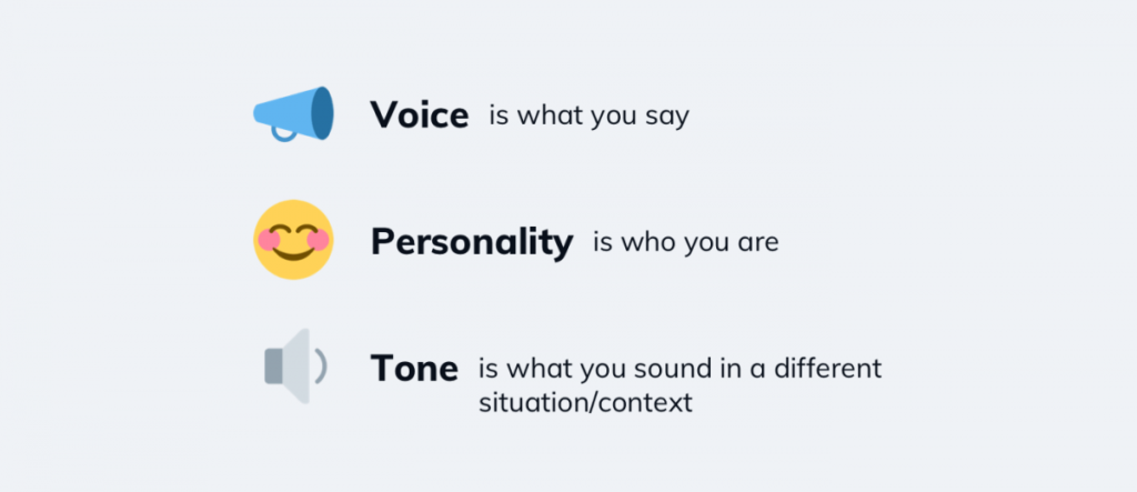 In simple words, a brand voice is a way you communicate with your customers. Your brand voice is geared at your target audience, and it can be authoritative, playful, intellectual, menacing, friendly, or entertaining, as long as it truly reflects your brand values and persona.