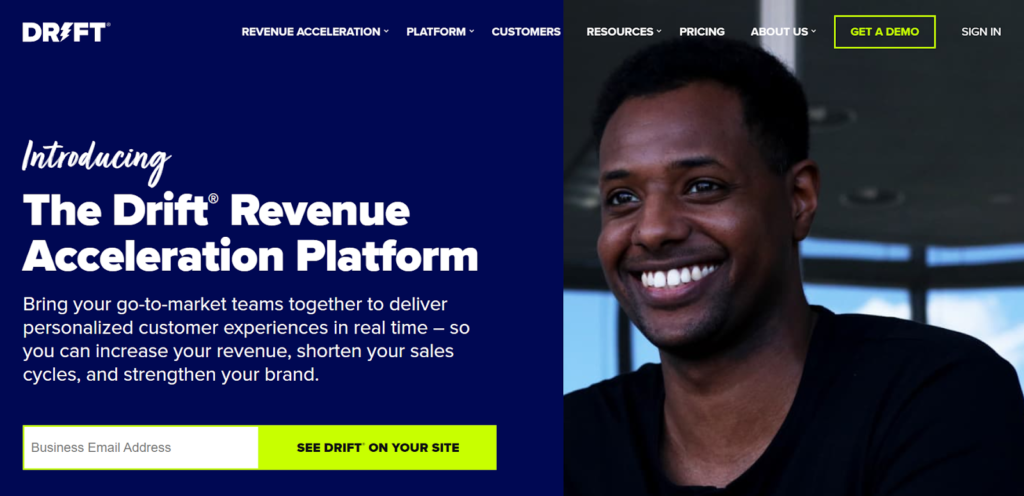 Drift is a wonderful marketing platform that redefines B2B sales communication. A renowned leadership principle states that every business activity must be customer-centric and involve a lot of human interaction. Drift is a wonderful network that helps develop a personalized conversation with users to revert with strong responses.