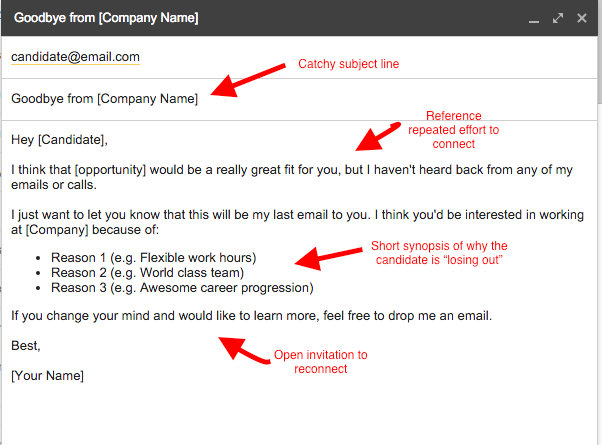 - Finally, inform them that they will not receive any more emails from you. But leave them an option to reach out if they ever need your service.