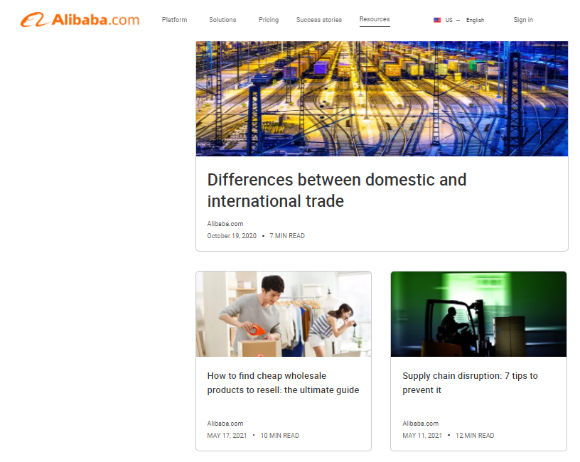 The Alibaba Group is a multinational technology company specializing in e-commerce and retail. Their business blog marketing efforts perfectly highlight their business and brand by focusing on tips for trade and e-commerce. Although this website caters largely to audiences looking for ways to elevate their B2B businesses, there is a wealth of information for those who are simply looking to learn about businesses in the retail space. They also have an encouraging section focusing on the success that people and businesses have gained through their brand.