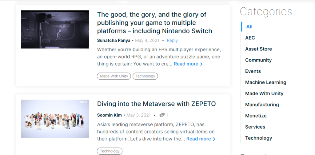 14. Unity Technologies blog