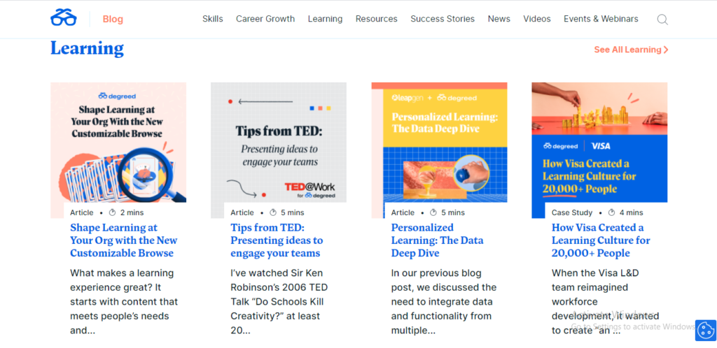 As a company focused on providing education to its customers, the business blog certainly carries its vision. It provides value to educators, businesses, and students alike, covering various topics ranging from arts to data sciences, among other things. It also encourages a reader to join the platform through inspiring stories contributed by customers.