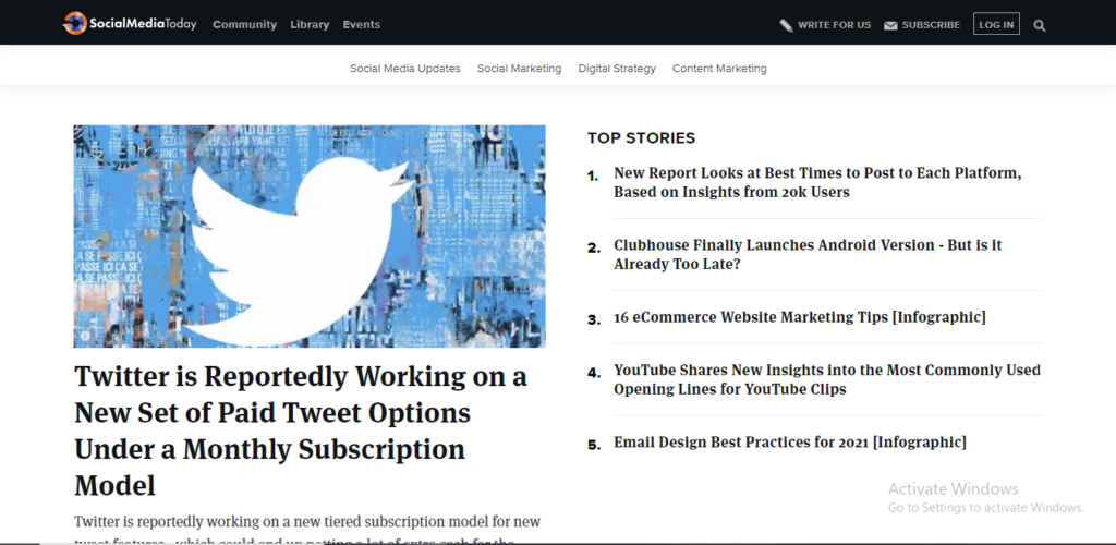 SocialMediaToday is a blog that provides you with the latest updates from the world of social media marketing. From updates on the latest social media features to digital strategy and content marketing, their business blogs allow you to stay on top of your social media marketing. It provides insights into the latest research and infographics presented by the social media giants, thus highlighting the importance of business research.