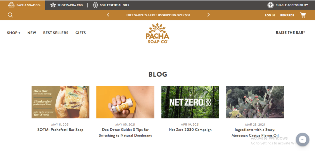 The visuals of their business blog alone promote the idea of eco-friendliness. Talk about effective business blog marketing! With articles on sustainable sourcing, net-zero carbon emissions, and organic ingredients, the website gives a reader the impression that the business is selling sustainability through soaps rather than the other way round. Nevertheless, it also dives into the soap-making process and health benefits and provides considerable value to readers.