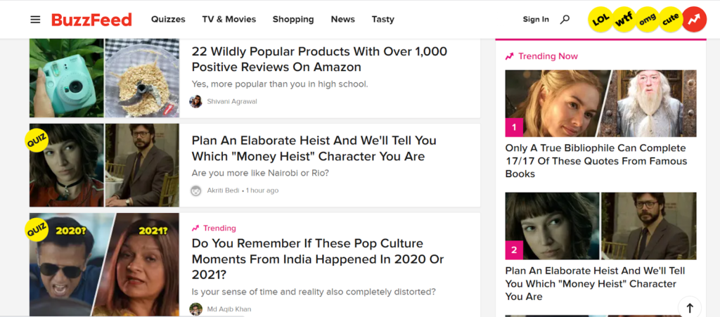 BuzzFeed has evolved tremendously, from a quiz-oriented site to one that increasingly covers serious news items. BuzzFeed has a well-defined audience and understands what material they want to experience. There is something for everyone because the organization is constantly evolving content marketing strategy and providing a plethora of content for its niche and general audience.