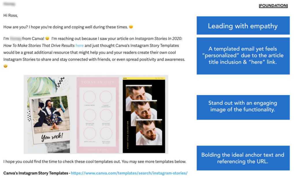 Outreach for backlinks is important for efficient content marketing. Canva has put together a team of outreach professionals who look for content that includes design-related terms. The content creators are contacted after that.