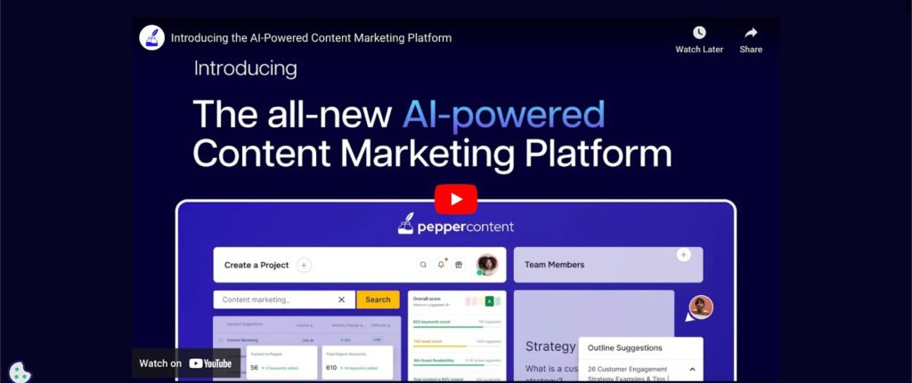 Pepper’s latest Content Marketing Platform is a great way to bring your content, data, and SEO teams together to achieve your marketing goals. Ideate, create, manage, distribute, and analyze all your marketing campaigns on a single dashboard, designed for winning teams.