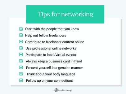Building genuine connections can pave the way for freelancing success. Networking with the right people in your industry may help you land your dream project or client. If you are a newbie, you should seek advice from your professional network, as it will widen your horizons.