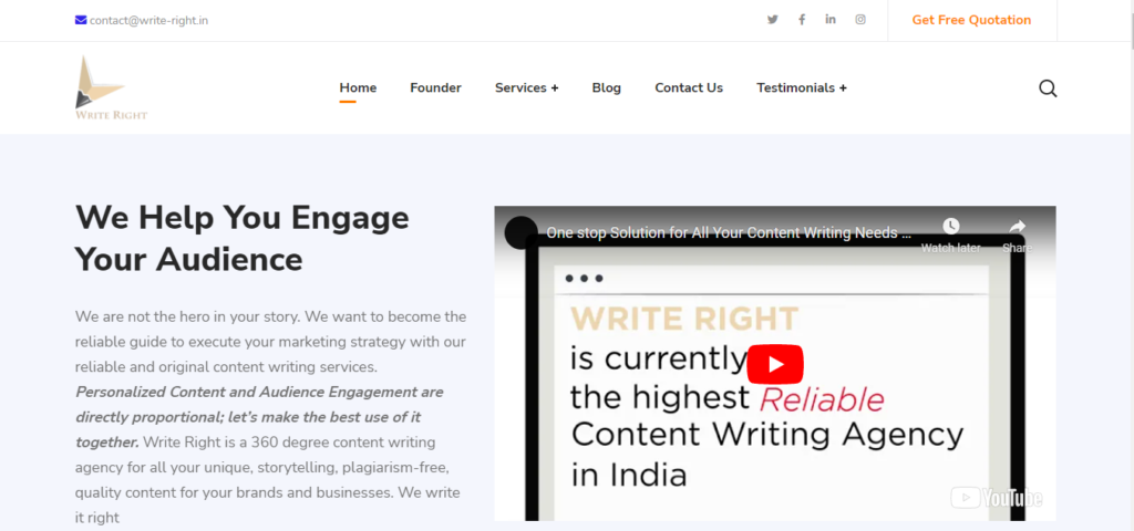 Based out of Ahmedabad, Write Right has a pan-India presence, focusing on attaining 100% client satisfaction, something that they rightfully claim as their key strength. They aim to crack the client brief, keep the quality top-notch and strictly adhere to deadlines.