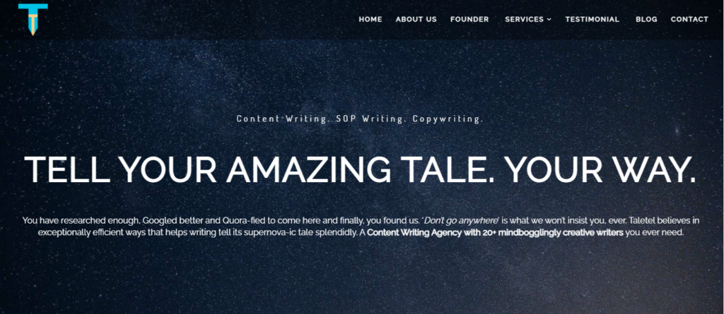 Confused about the kind of content that would work for you? Reach out to TaleTel to not only figure it out for you but also execute the same. This content writing agency has proficiency with all kinds of content and guarantees you a 360-degree approach and service.