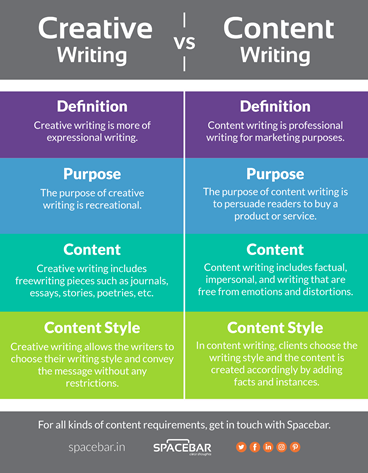 There are vast differences between creative writing and content writing, based on various factors. Up next, we will compare creative writing vs. content writing on several parameters.