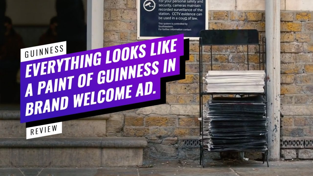 - Guinness released a TV ad with images such as a white cat sitting on a black bin, a foaming washing machine, and a grocery cart covered with canvas, all things intended to remind the viewer of the beverage either in shape or in color.