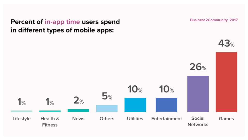 - Almost everyone on smartphones uses an app, and only 11% uses standard websites. Facebook is the most popular app, and it shows how much time people spend using it.