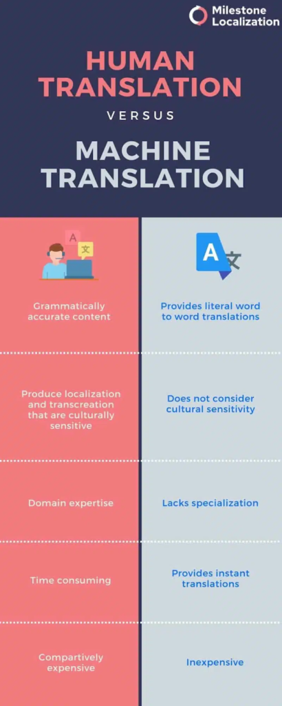 Also, a machine cannot be programmed to the extent that it can naturally come out with an emotionally engaging translation that appeals to the target audience by itself when attempting an advertising or marketing content translation. Simply put, a machine is not equipped to completely deliver content that is ready to be published, and a human translator is required to do the requisite updates and reviews.