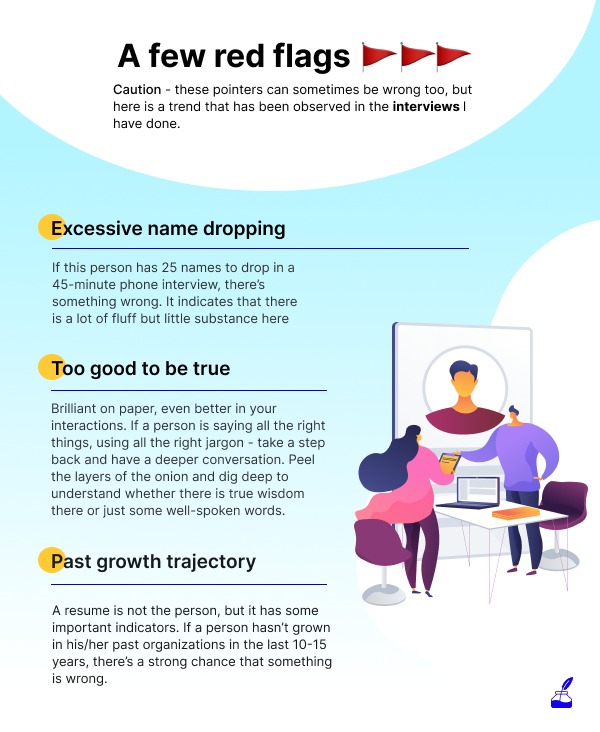 Now, more than 2000 interviews later, I have devised my own checklist, an intuitive sense of knowing who is the perfect fit for Pepper and who isn’t. I could be wrong (and of course, I have been in the past), but these lessons have, by and large, served me well. I hope these can help the readers of this blog as well: