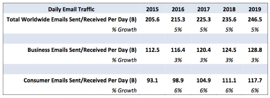 As per Radicati, an American worker received an average of 126 emails every day. However, studies also show that emails only hold approximately 8 seconds of attention before readers lose interest.