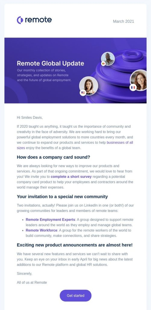 The email design guide suggests you always provide the option of unsubscribing to your reader. It should include an easily visible “unsubscribe” button in case readers feel the need to stop receiving your content. In certain countries, you are required by law to add an opt-out button.