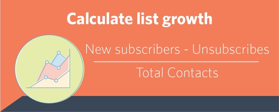 The list growth rate metric is used to measure the growth rate of your email subscription list. Since attrition is to be expected, you need to continuously grow your list by engaging existing subscribers and finding new subscribers. This KPI is calculated using an easy formula: