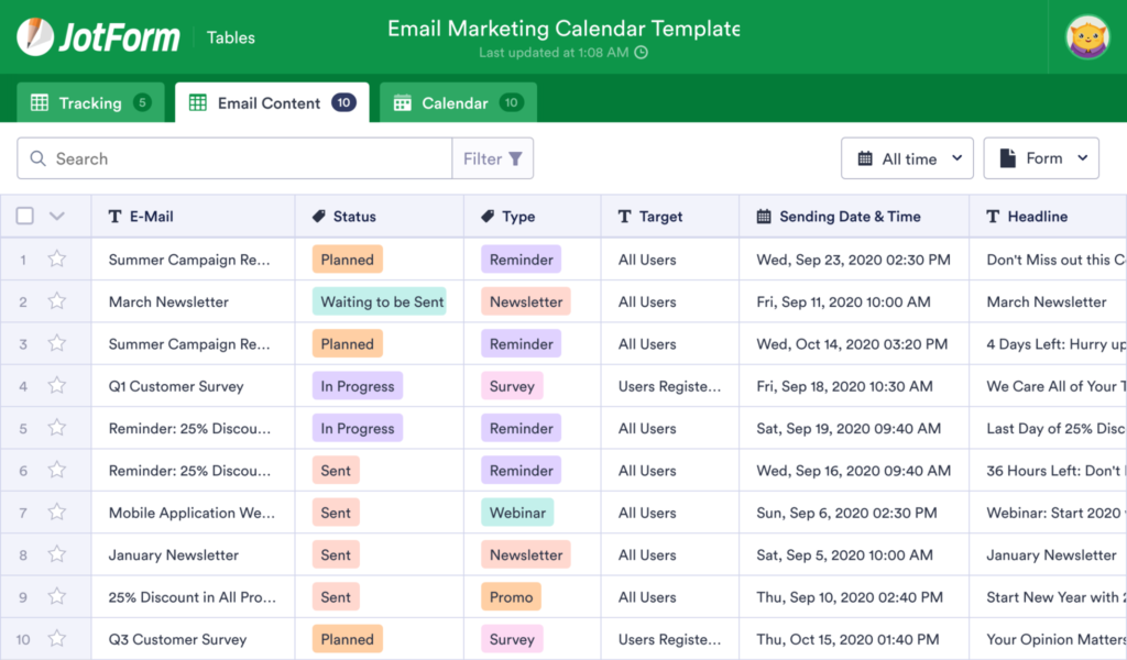 This helps in two ways. One, it builds a habit for the end-user to accept your email at the same time each week or month. This practice will enhance the click rate of your emails. Second, it makes content creations much easier since there is a timeline to work against.
