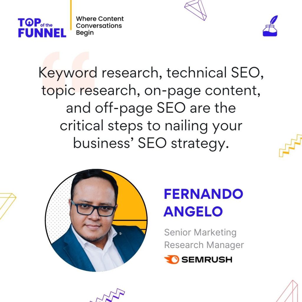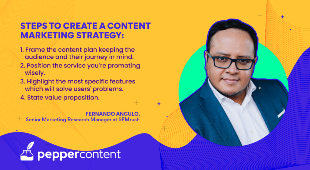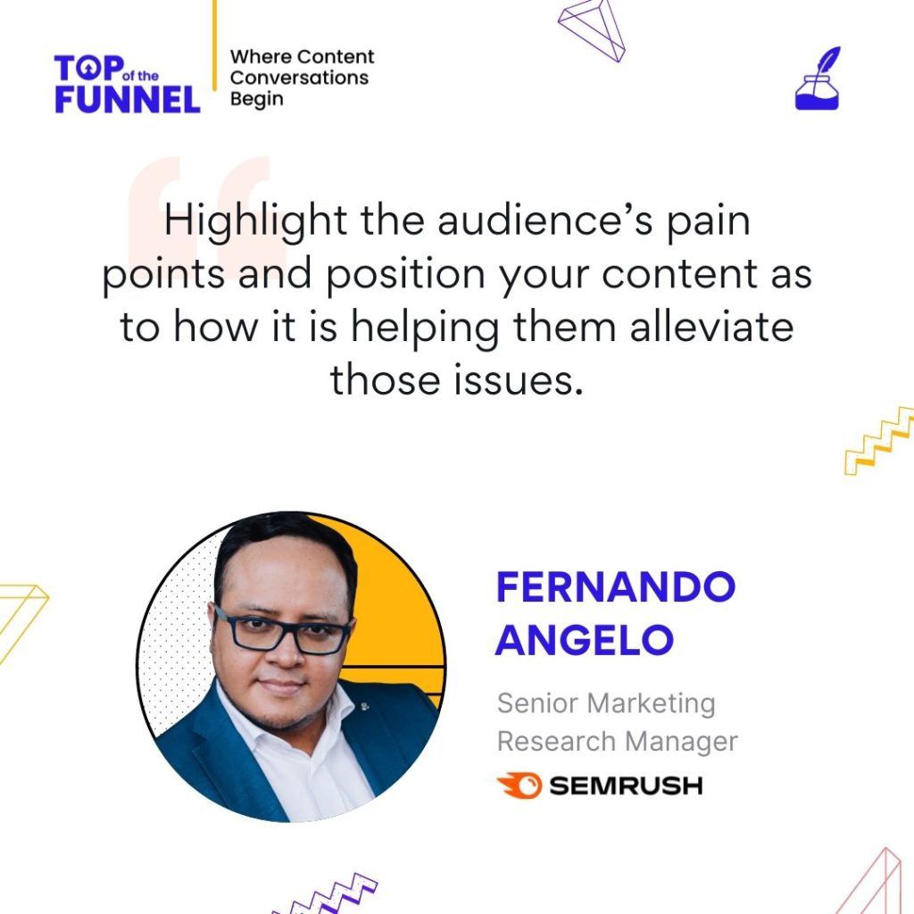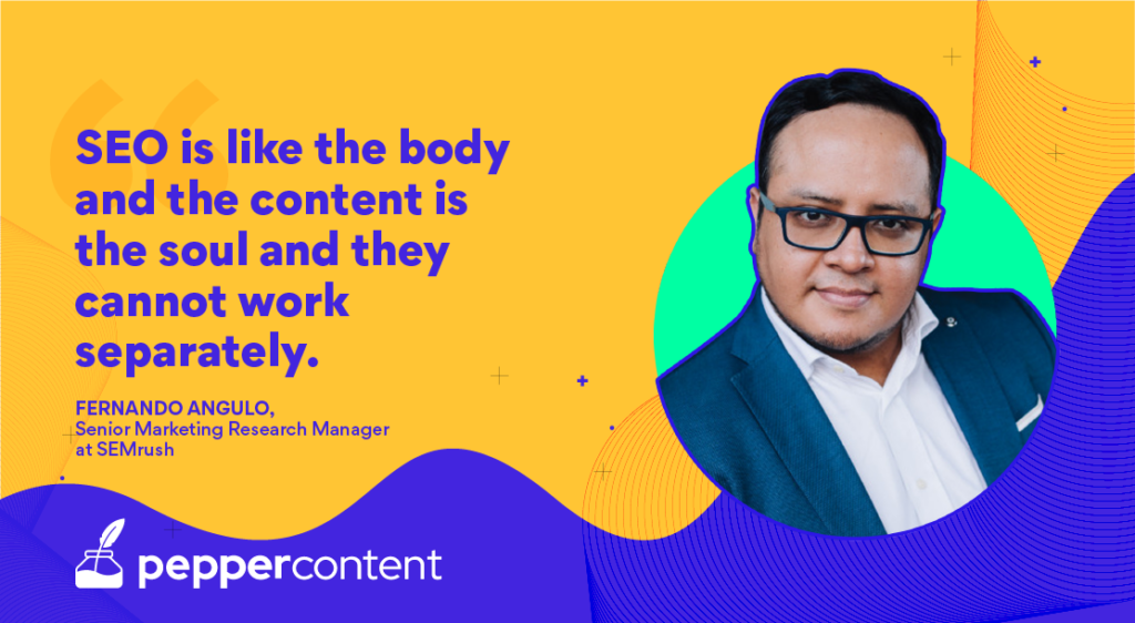 I’m hoping that content marketers can take many actionable takeaways on what we can do to take our content marketing strategies to the next level. Let me welcome Fernando Angulo. He is the senior market research manager at SEMrush and has played multiple roles over there.
