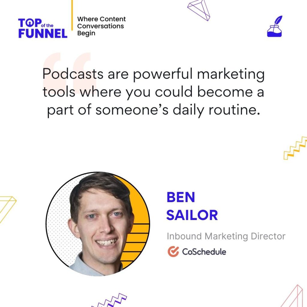 Ben Sailor: I do believe that podcasts can be an important inbound marketing tool. I cannot pull any numbers off the top of my head. Podcasts are channels that have been growing and growing in popularity for years now. Podcasts have several advantages.