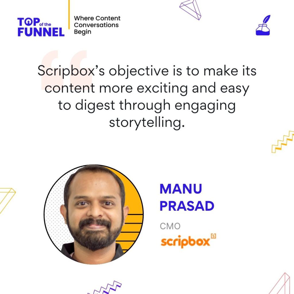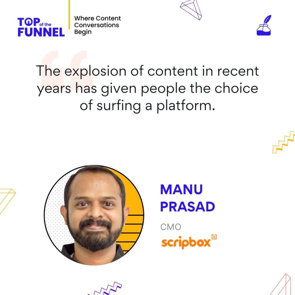 Natasha Puri: Hello everyone. Welcome to the Top of the Funnel, the series where conversations about content begin. Our guest today is Manu Prasad, the Chief Marketing Officer at Scripbox.