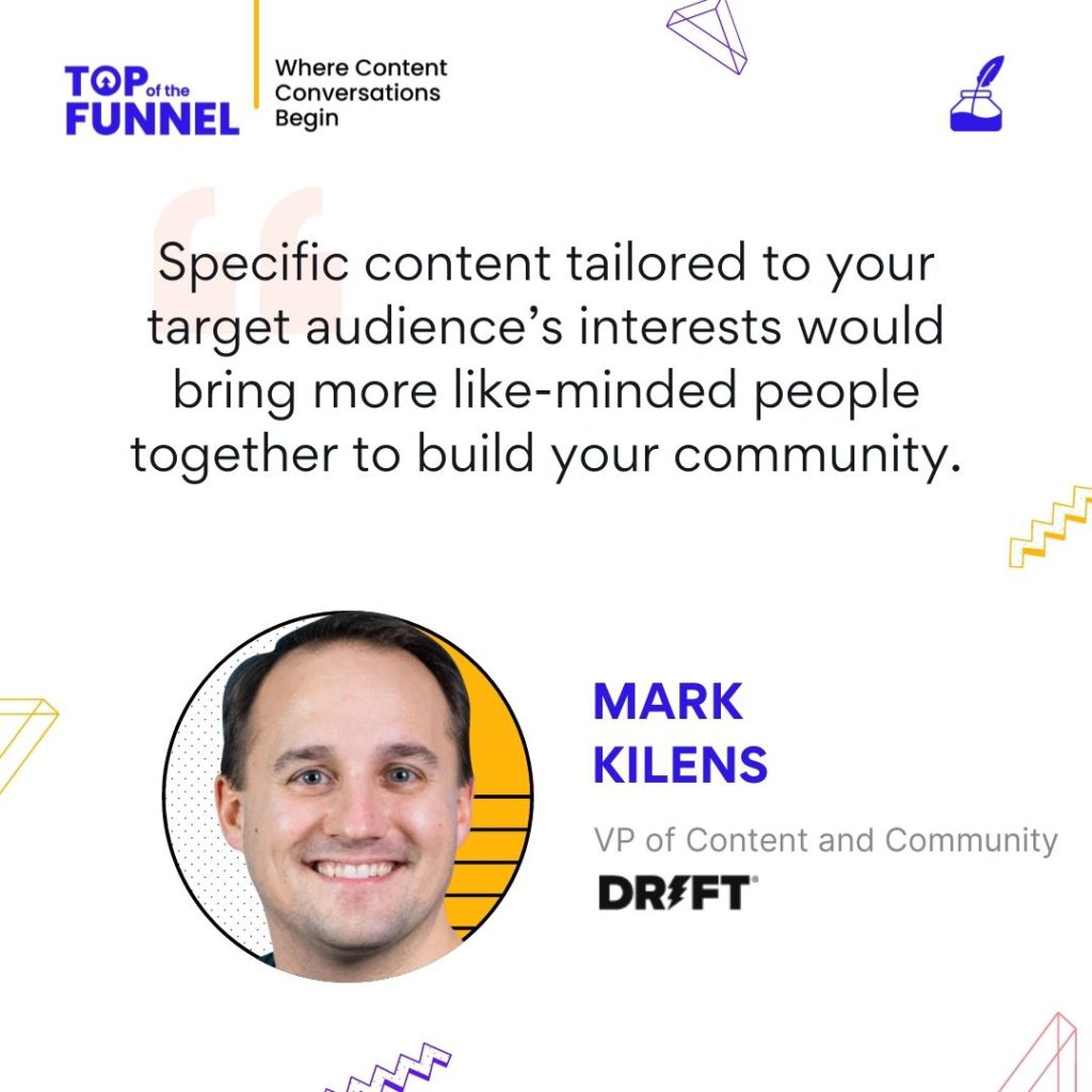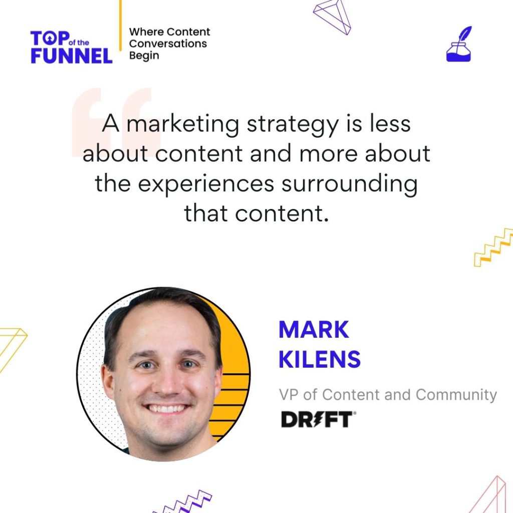 Natasha Puri: Hello everyone. Welcome to the Top of the Funnel, the series where conversations about content begin. Our guest today is Mark Kilens, Vice President of Content and Community at Drift. This chat promises to be very informative and insightful for Mark had been with Hubspot since its initial days, before moving on to Drift. He is known for his engaging campaigns that consumers trust throughout the world.