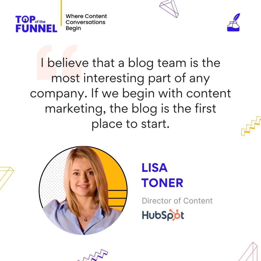 Natasha Puri: Hello everyone. Welcome to Top of the Funnel, the series where conversations about content begin. Our guest today is Lisa Toner, the Director of Content at Hubspot. This chat promises to be very informative and insightful as Lisa takes us through Hubspot’s content marketing teams, their strategies, and leaves valuable informative nuggets for businesses to make use of. The Hubspot is almost synonymous with content marketing. They have done a remarkable job in bringing inbound leads, prospective customers, and convertible leads to businesses. Lisa has joined us from Dublin.