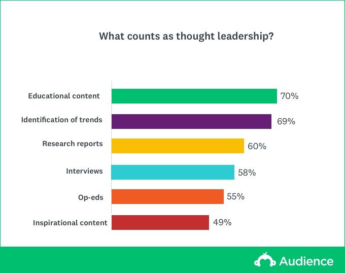 - Creating thought leadership content is one of the best ways to prove that you are an expert in your niche. It makes your target audience more likely to trust your product or services.