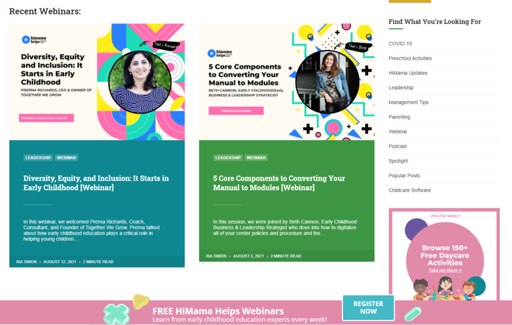 Despite being one of the worst-hit industries in the pandemic, HiMama continues to build trust and support with parents and daycare owners by hosting the aptly named ‘HiMama Helps’ webinar series every Thursday. It’s not hosted by the high-ranking C-Suites, but by subject matter experts designated as ‘Community Ambassadors’ who can understand the daily nitty-gritty of running a daycare.
