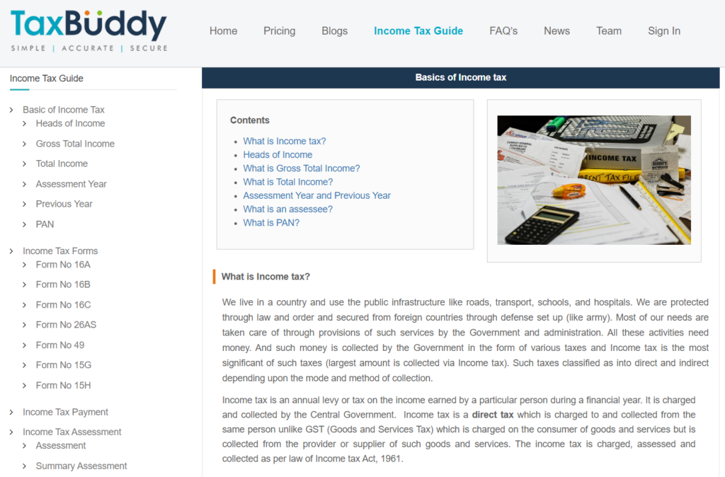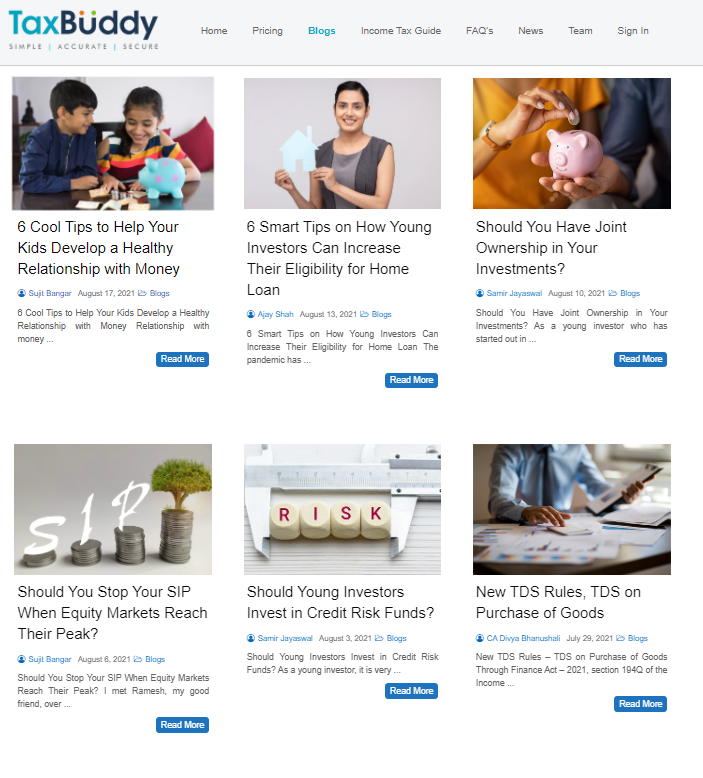 Tax buddy is a savior every April for youngsters who are comfortable with going the online route for filing taxes. To help new earners understand the changing systems in India. TaxBuddy has a wiki-style Income Tax Guide that explains the IT Act. For addressing more common concerns about money, turn to their blog section for exciting insights.