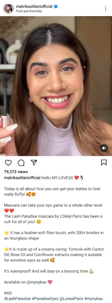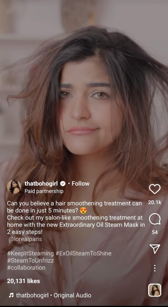 L’Oréal Paris works with new-age influencers such as Kritika Khurana and Juhi Godabme to create an excellent organic material that engages the audience.